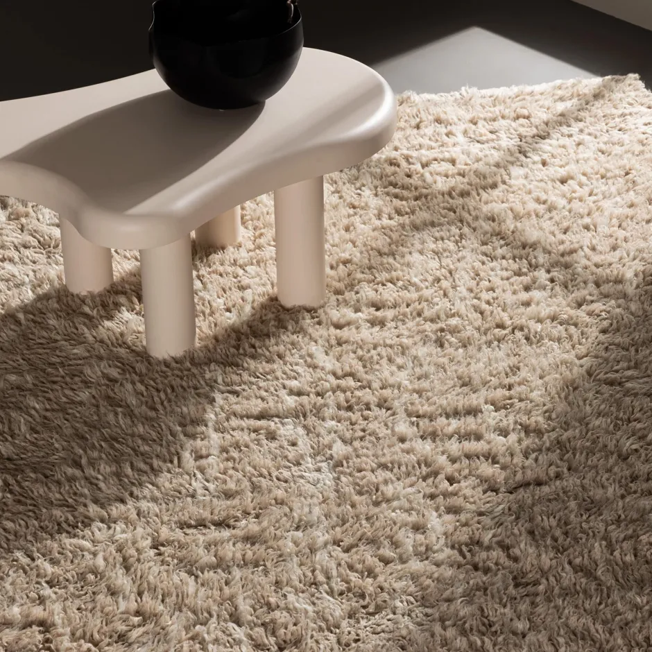 Fluffy champagnekleurige wollen mat met zijdeachtig gevoel! Deze rechthoekige schoonheid maakt deel uit van de Mechel mattenserie, die handgeweven wollen tapijten biedt in verschillende kleuren en maten. Het tapijt voelt zacht en vol aan door de hoge pool en dichtheid die een verfijnde indruk geven aan de kamer. De moderne kleur in beige maakt het tapijt gemakkelijk aan te passen aan een andere inrichting. Leg het onder de salontafel of in de slaapkamer en laat het een gezellig detail worden om je voeten op te leggen! De afmeting van de mat: 230×160 cm.