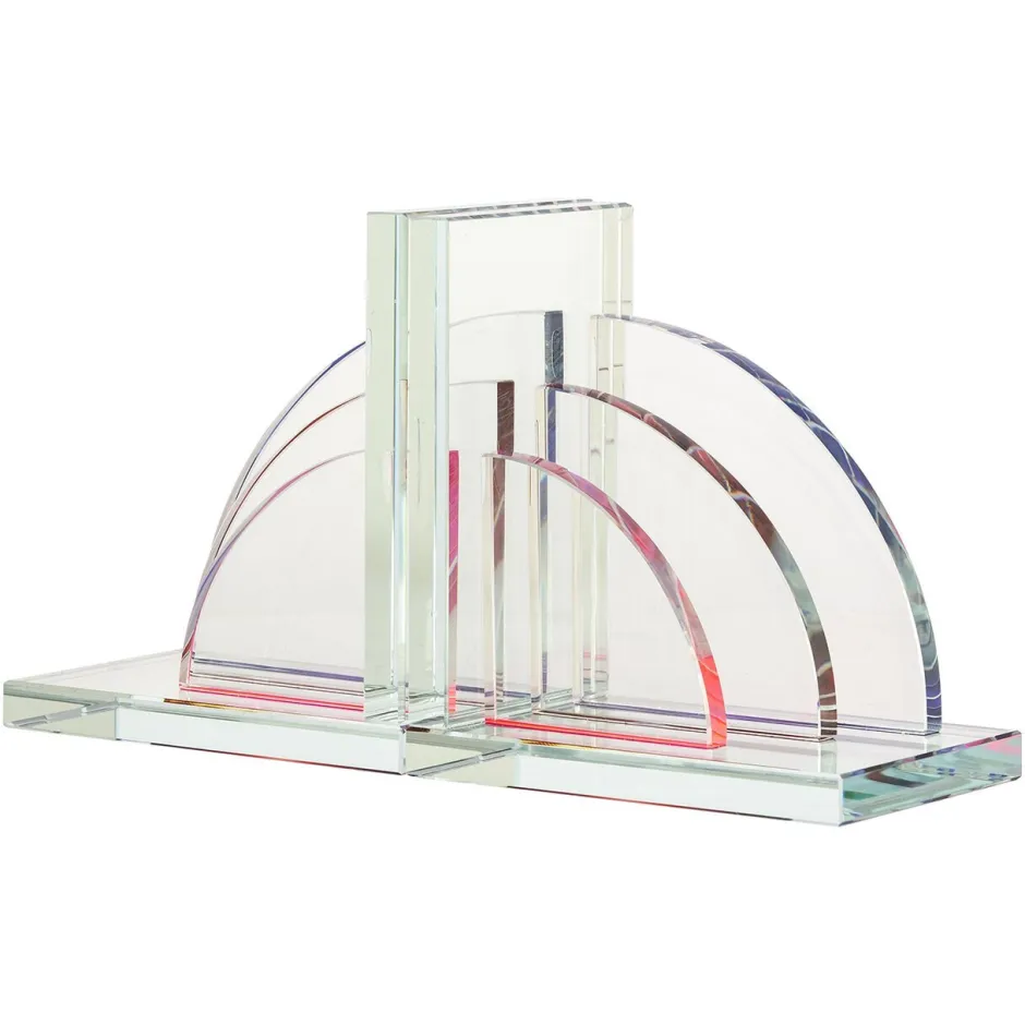 De Boekenstandaard Linnea, vervaardigd uit helder kristal, biedt een uniek 3D-effect met subtiele kleuraccenten. Dit stijlvolle designstuk combineert functionaliteit met esthetiek, houdt boeken stevig op hun plaats en voegt tegelijkertijd een vleugje luxe toe aan elke boekenplank of tafel. Een perfecte mix van kunst en bruikbaarheid voor het moderne interieur.