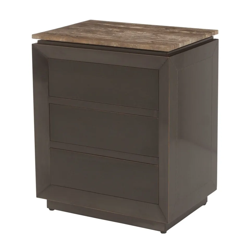 Nachttafel Russo in bruin heeft drie lades en biedt zowel opbergruimte als elegantie.