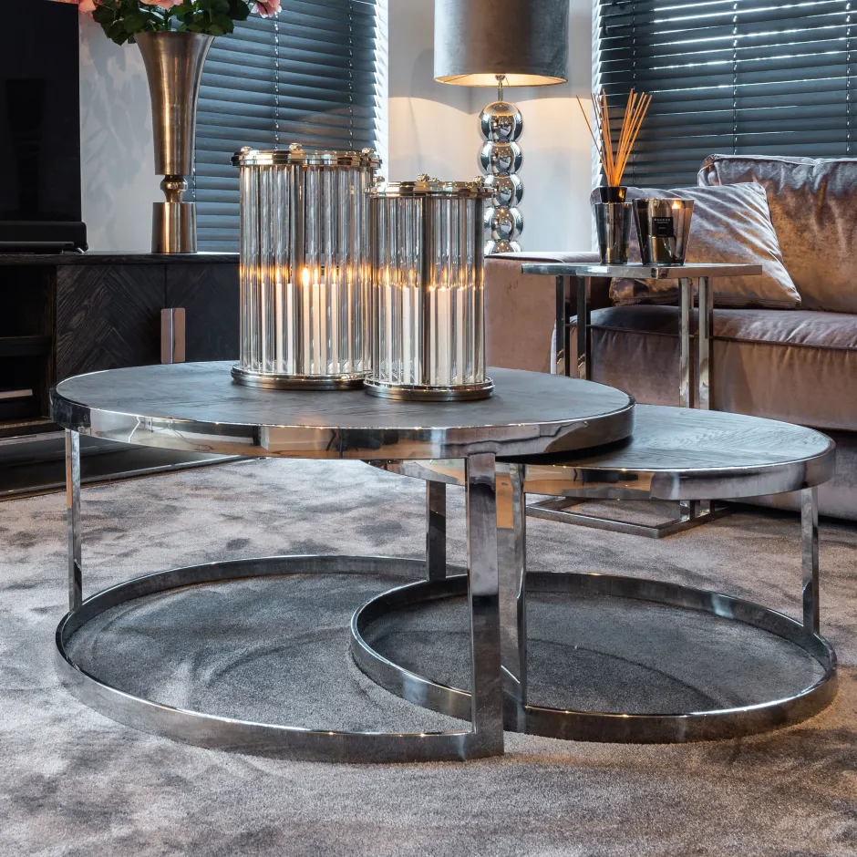 Salontafel Blackbone silver set van 2 rond is een verrijking voor je zithoek! Deze stoere, maar toch elegante salontafel…