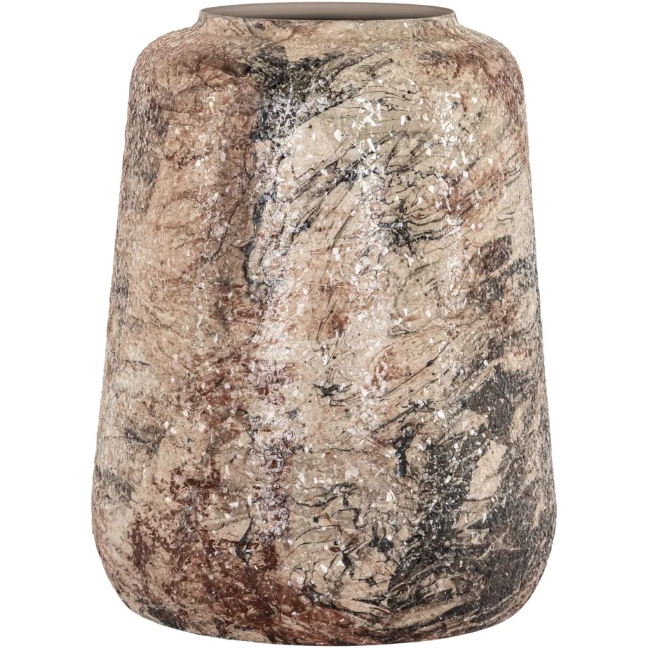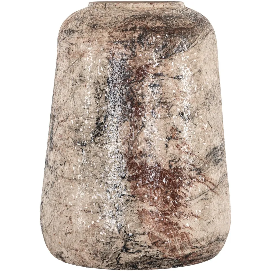 Vaas Dena small heeft een ronde vorm en een gespikkeld beige oppervlak. Een decoratieve vaas met natuurlijke tinten, per…