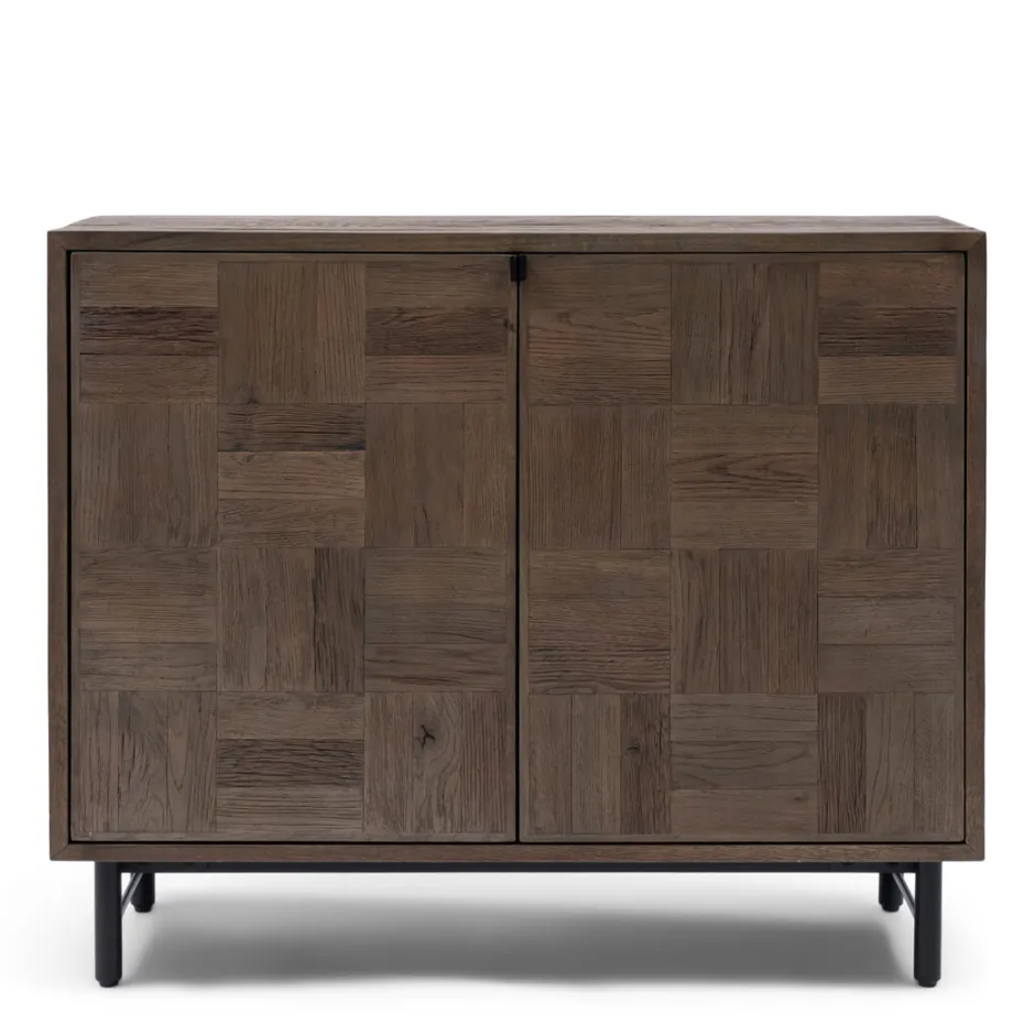 - Robuust en verfijnd, dat is het dressoir Mac Arthur Park. Dit dressoir rust op donkere metalen poten en is gemaakt van prachtig gerecycled eikenhout, met een speelse indeling van vierkante panelen. Achter de twee softclose-deurtjes bevinden zich twee handige lades. Het dressoir biedt een perfecte combinatie van functionaliteit en moderne esthetiek, waardoor het een stijlvol en praktisch element in elke ruimte is. Dankzij het gerecycleerde eikenhout is elke kast uniek. Dit dressoir vormt de perfecte aanvulling op andere meubels uit de Mac Arthur-lijn.