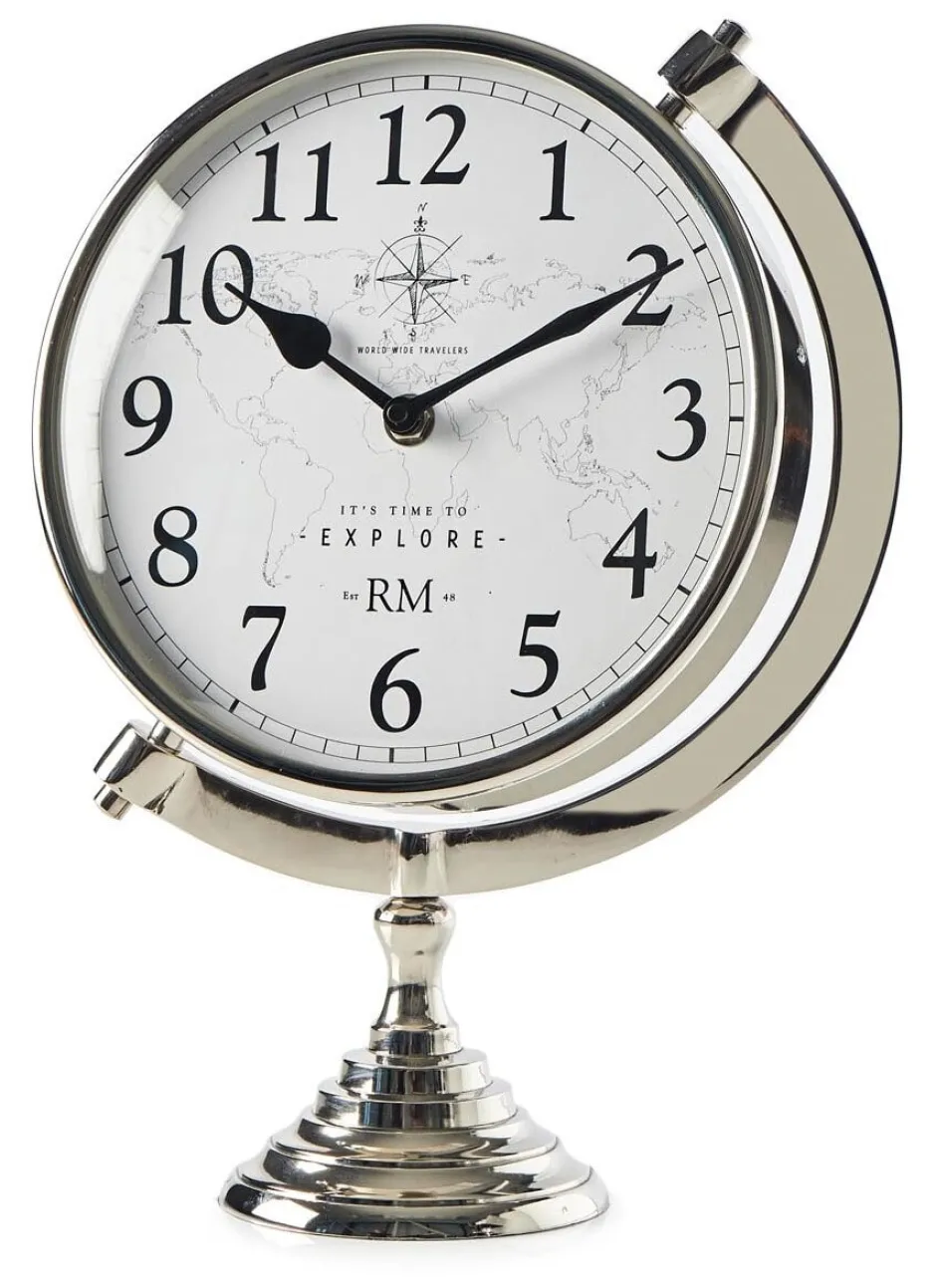 Deze geweldige klok is geïnspireerd op een wereldbol en is tevens een echte blikvanger in uw interieur. Plaats de klok op de schouw van de openhaard of vind een andere mooie plek in uw interieur waar deze mooie klok helemaal tot zijn recht komt en u zult altijd op tijd komen.