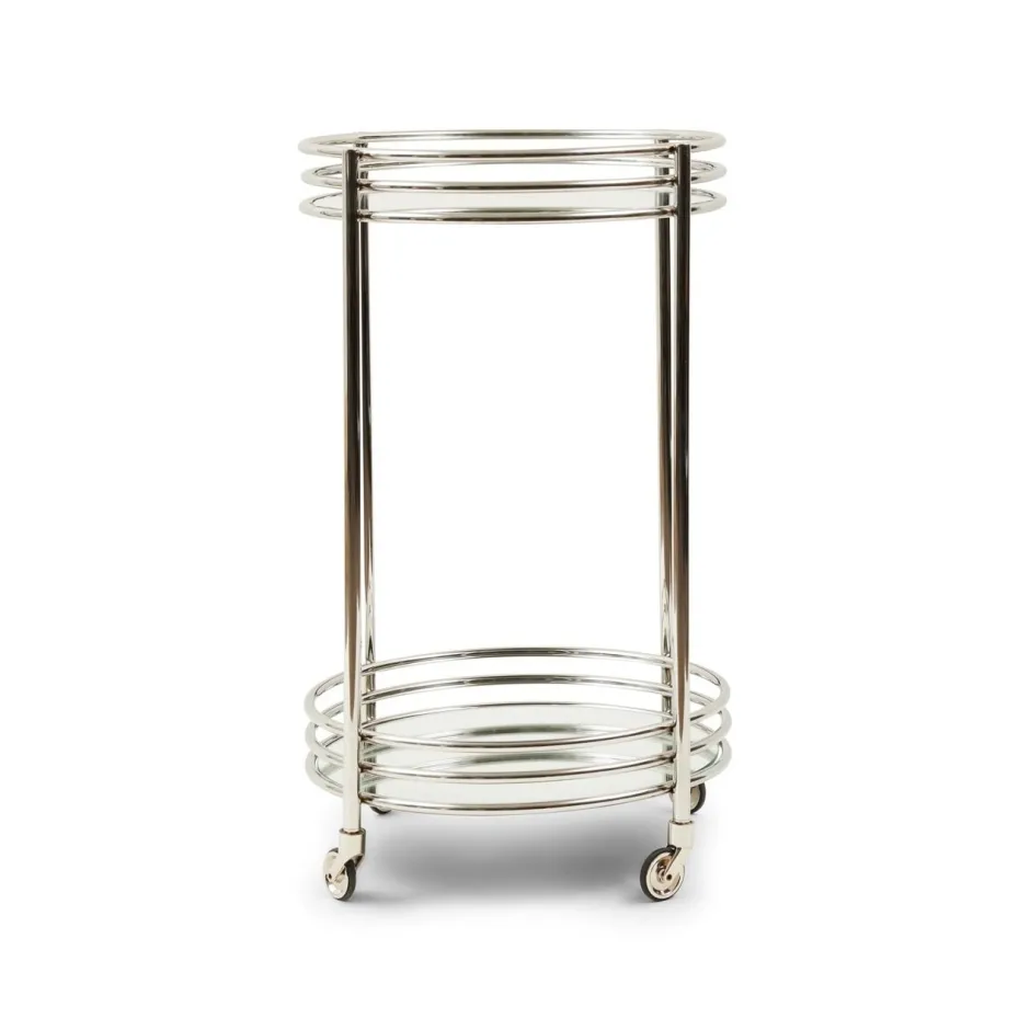 Een rijdende bar, dat is nog eens luxueus. Naar believen laat u hem staan waar hij staat, of u rolt hem naar waar u hem wilt hebben. Gemaakt van prachtig glanzend metaal straalt deze assistent u tegemoet. Brengt alles mee wat u maar nodig heeft, als u hem tevoren even laadt. Met zijn twee bladen biedt hij volop plaats.