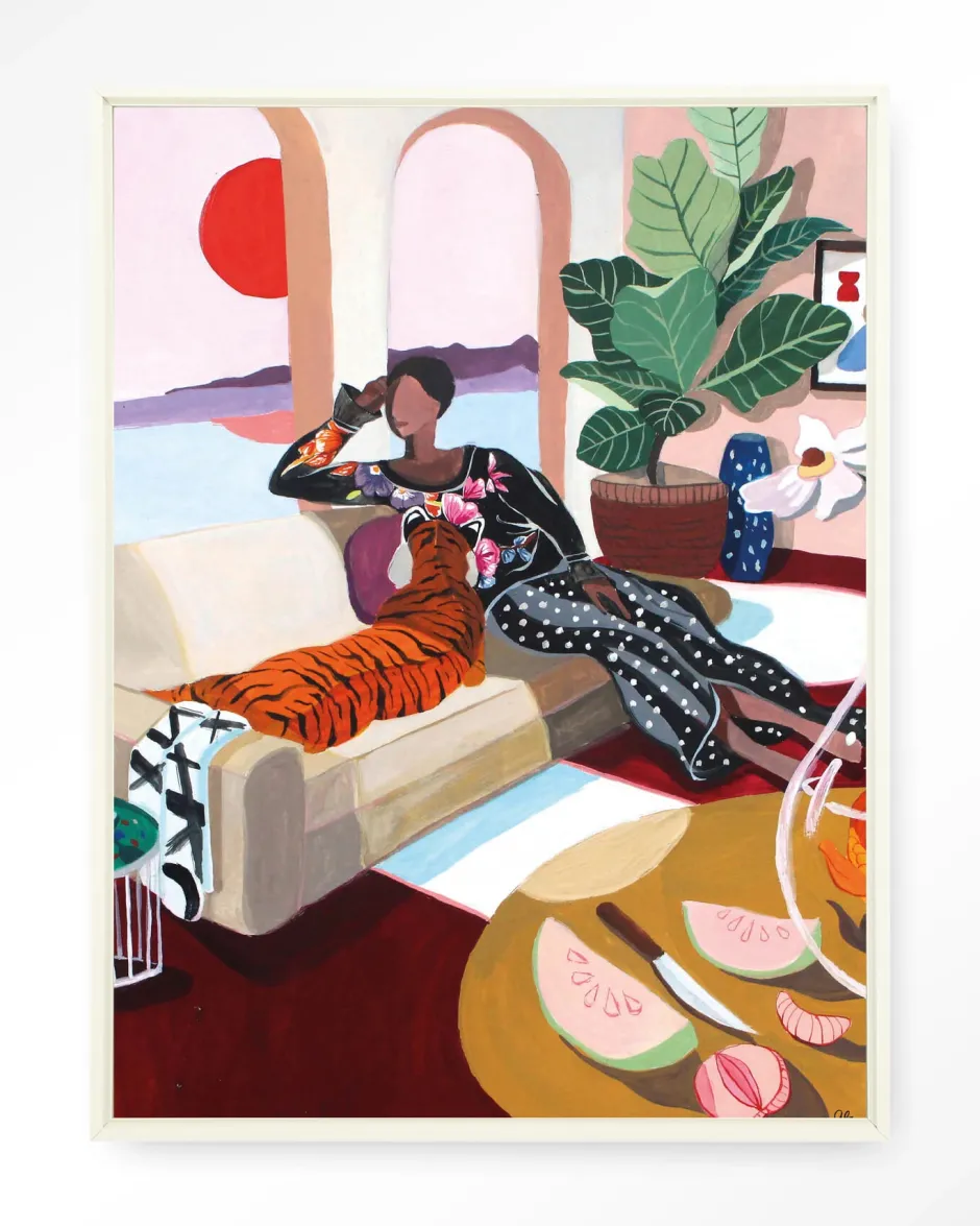Clearance Urban Cotton Wandkleed Tiger Queen in maat en frame naar keuze