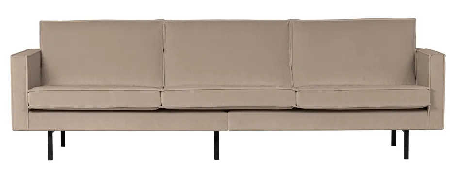 De Rodeo bank is opgebouwd uit een combinatie van massief hout, spaanplaat, polyurethaan schuim met een dichtheid van 25 kg/m3 en een zigzag vering. De zitting bevat een polyurethaan schuim met een dichtheid van 30 kg/m3 (T3037). De rugleuning bestaat uit een combinatie van 70% gesneden schuim en 30% siliconen. Deze Rodeo is bekleed met een rijke velvet. Onze Jarra fluwelen stof heeft een luxe uitstraling. De stof voelt fijn aan en heeft een mooie lichte glans. De Jarra velvet bestaat uit 100% polyester en heeft een volle en zware kwaliteit. Het materiaal is daarom geschikt voor intensief gebruik (Martindale 100.000). Naast het stijlvolle design blijft de velvet stof lang mooi. Onze Jarra stof zal niet snel pillen en is kleurvast. De stof is, tot verrassing van velen, een zeer gemakkelijke stof om te onderhouden.