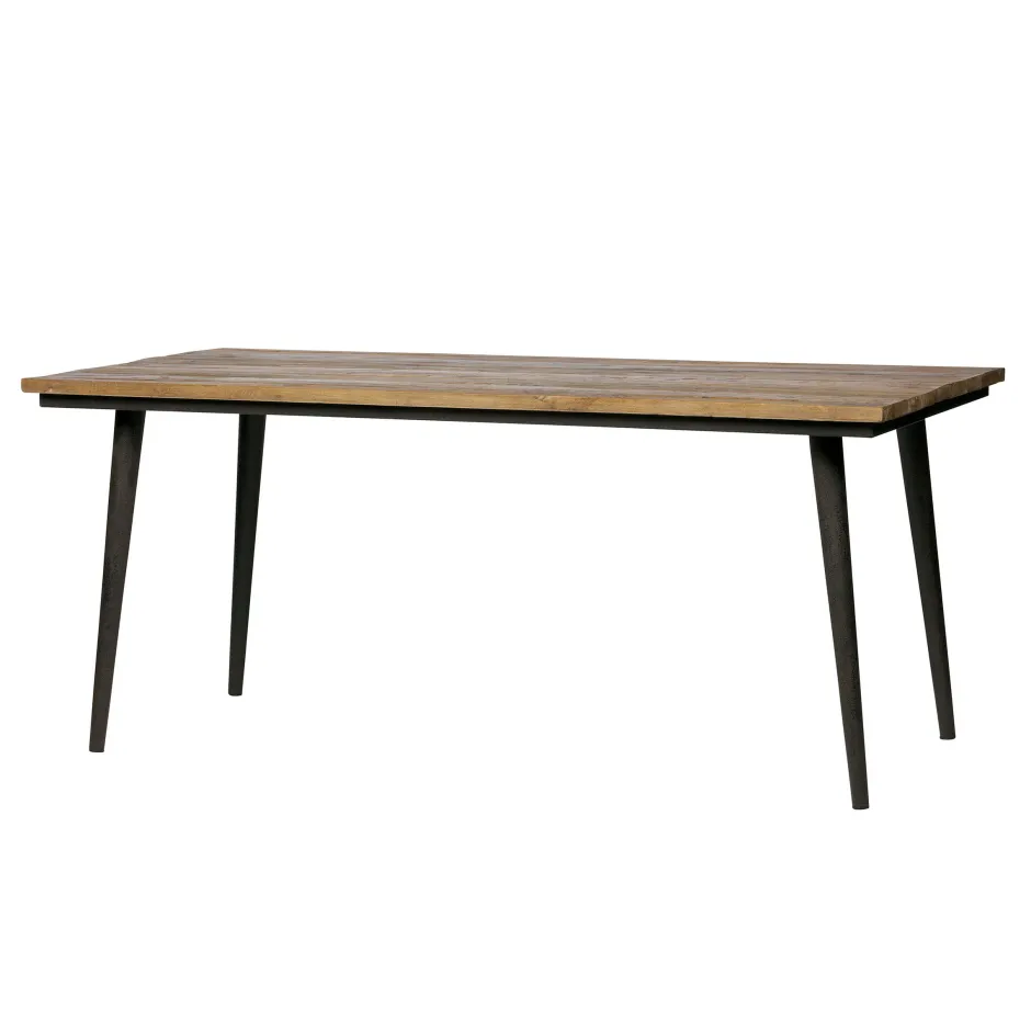 Een stoere, karakteristieke eettafel. Dat is deze eettafel Guild uit de nieuwe collectie van WOOOD. Guild is gemaakt van reclaimed elmhout met een matte afwerking op waterbasis, waardoor de karakteristieke look van het houd behouden blijft. Hierdoor is elk tafelblad uniek! De tafel is voorzien van een roestzwart metalen onderstel. Perfect geschikt als blikvanger in de eethoek.