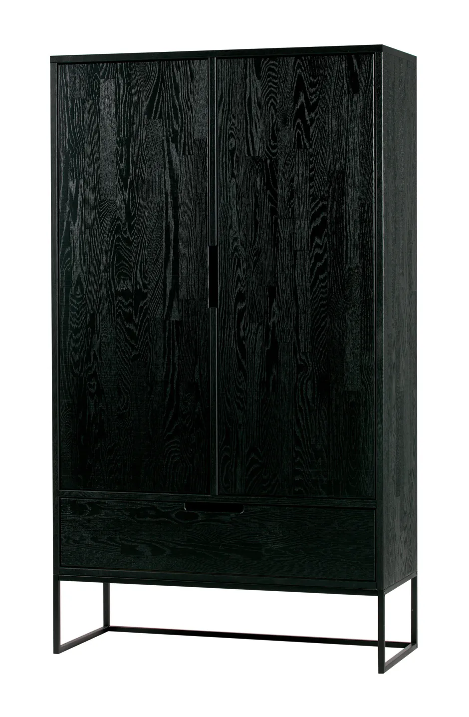 De WOOOD Silas 2-deurs kast [FSC] heeft een moderne uitstraling en biedt een stijlvolle plaats om je spullen in op te bergen. De Silas 2-deurs kast is gemaakt van massief eiken met een geborstelde afwerking dat is afgelakt in de kleur blacknight. Het onderstel (h: 20 cm) is gemaakt van metaal en is afgewerkt in een zwarte kleur.