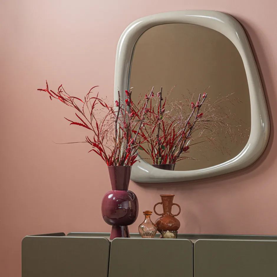 De Norea spiegel van het Nederlandse interieurmerk WOOOD is een royale blikvanger die moeiteloos in elk interieur past. De spiegel van een speels design en zandkleurig frame. Maak je interieur compleet met de stijlvolle Norea spiegel.