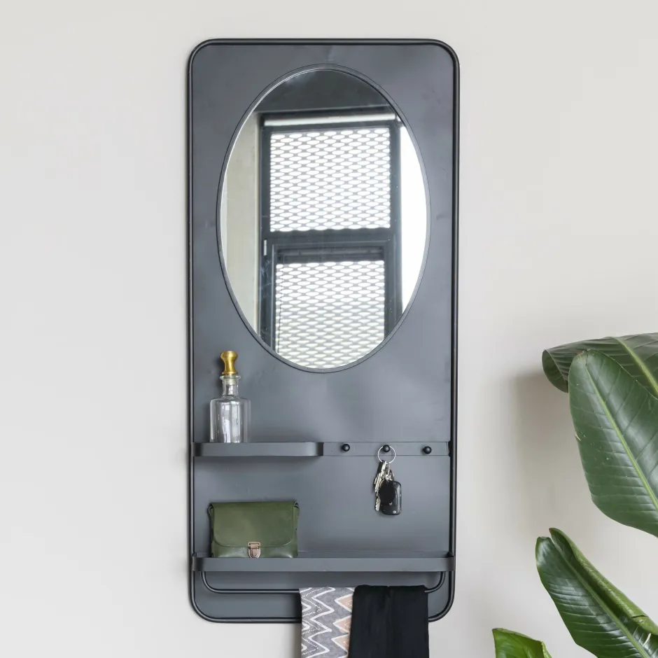 Clearance ZILT Spiegel Jaros Met 2 planken en 3 haakjes, 108 x 53cm