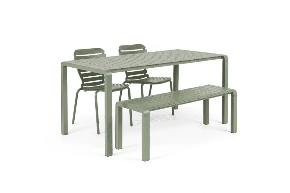 Clearance Zuiver Tuinset Vondel Met tuintafel, 2 stoelen en bankje, 168 x 87cm, kleur Groen
