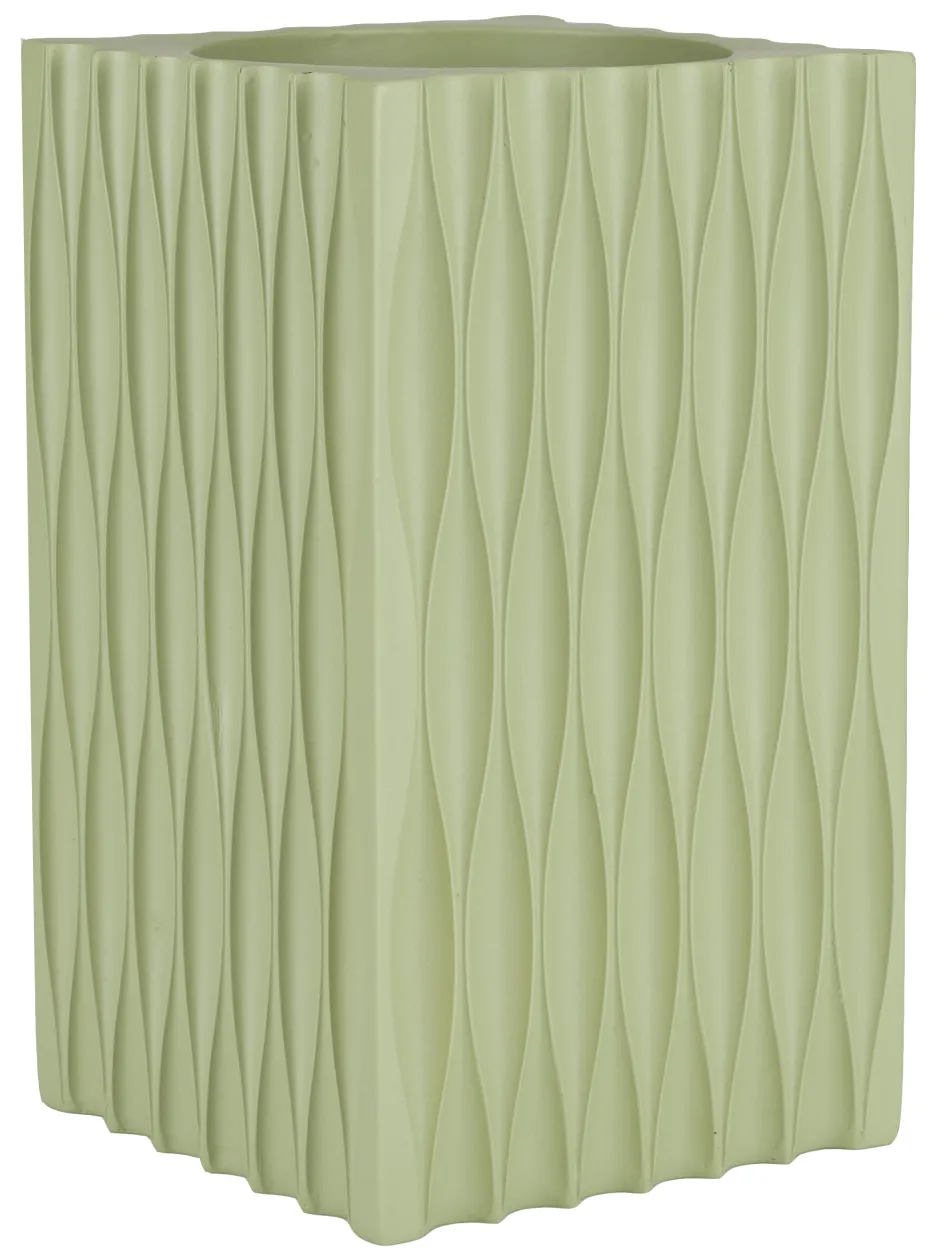 Natuurlijk fleuren bloemen iedere ruimte op. Toch doet de Riley vaas dat stiekem ook al zonder boeket erin. Het opvallende 3D reliëf met grafische vormen, geeft namelijk een interessante en speelse look. Je moet er haast wel even met je vingers overheen glijden! De matte afwerken zorgt voor de finishing touch en geeft een extra fris tintje.