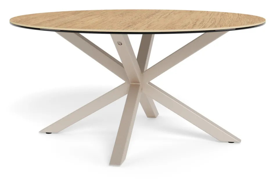Wat is een betere manier om je eigenaardige smaak te laten zien dan met deze salontafel? Zijn kenmerkende look is gebaseerd op het ronde tafelblad van wild eiken keramiek en glas – en de sculpturale kruisvoet van grijs gepoederd staal. Beide elementen flatteren elkaar niet alleen, maar zijn ook gemakkelijk te onderhouden en krasbestendig. Of je nu omringd bent door gedempte of levendige kleuren, deze salontafel past zich gemakkelijk aan.