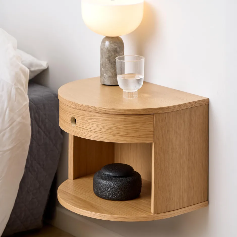 - Nachtkastje voor aan de muur in een halfronde vorm