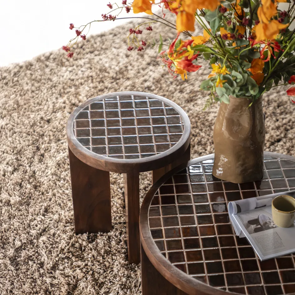 Discount By-Boo Ronde Bijzettafel TiledUp Keramiek en mangohout, 40cm Bruin