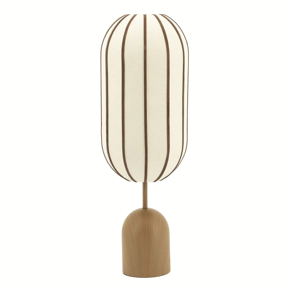 Discount By-Boo Tafellamp Cocoon Linnen en leder, 80cm, kleur Bruin
