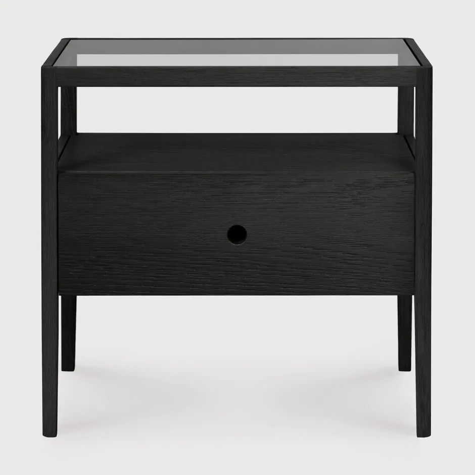 Discount Ethnicraft Nachtkastje Spindle Hout en glas, Met 1 lade