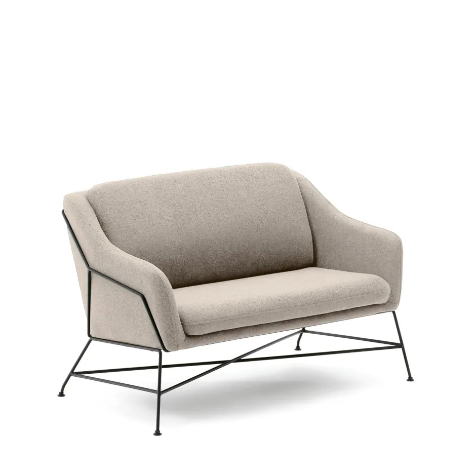 - Gestoffeerde 2-zitsbank met beige structuurstof.