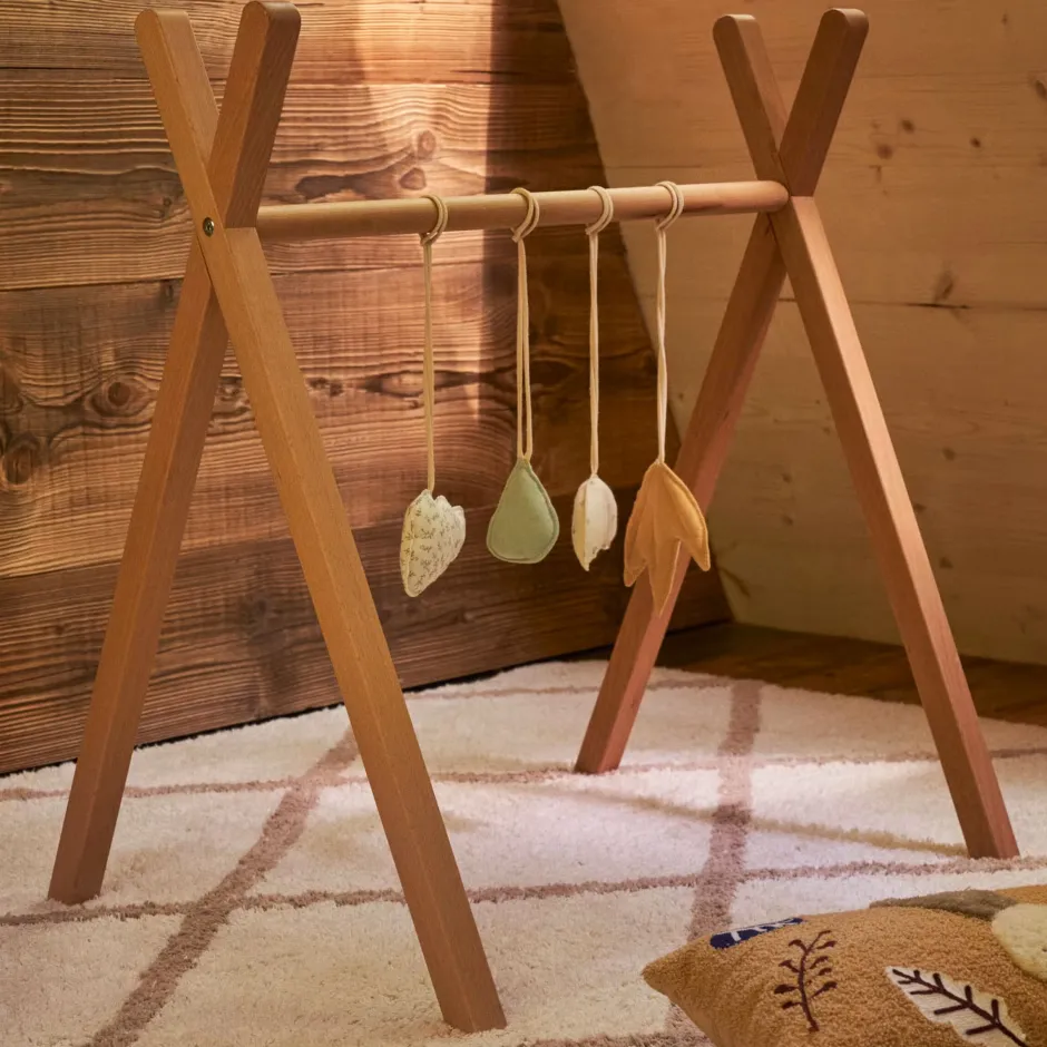 Dit speelkameraadje in de vorm van een tipi voor je baby is gemaakt van massief essenhout en is ideaal voor de ontwikkeling van hun vaardigheden. Bevestig hun favoriete hangende speelgoed aan dit stuk en zie hoe het nooit te vroeg is om spelenderwijs te leren.