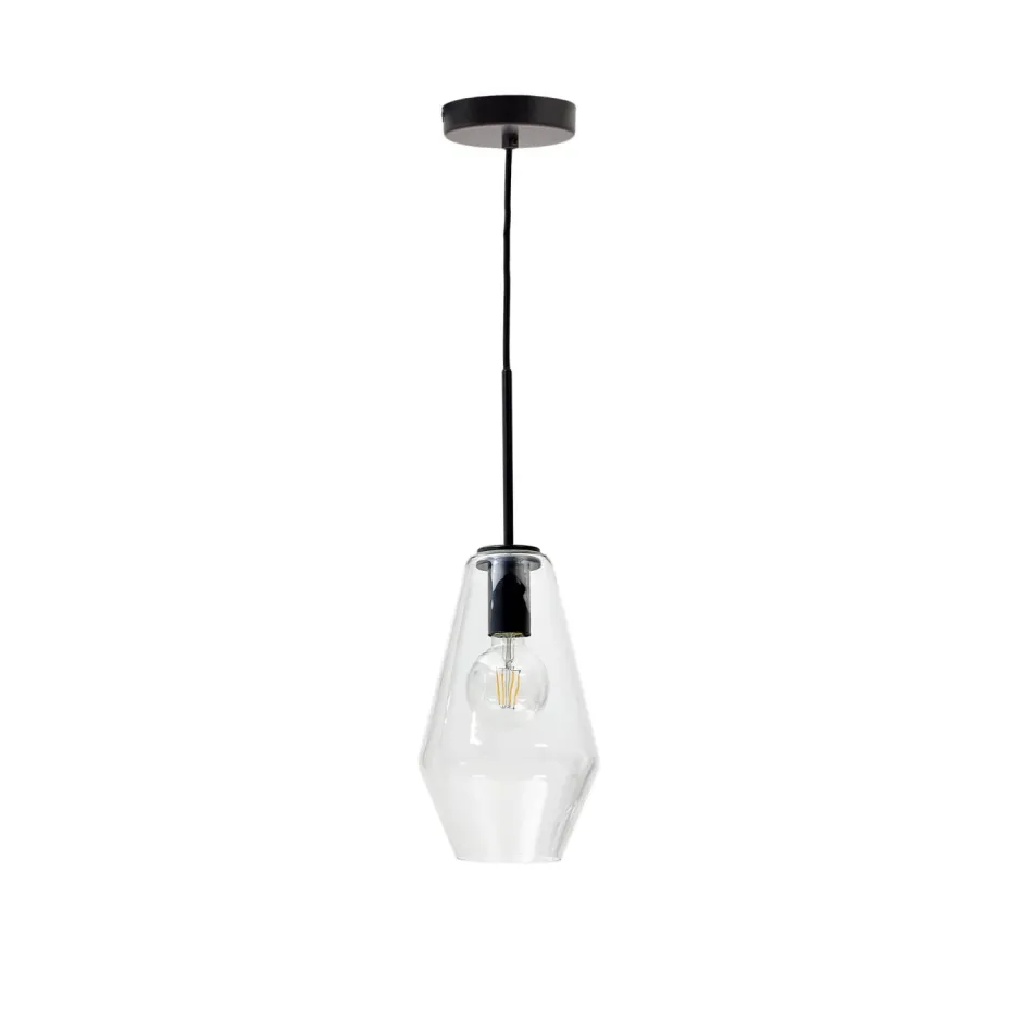 - Plafondlamp gemaakt van glas met een transparante afwerking en zwarte montage.