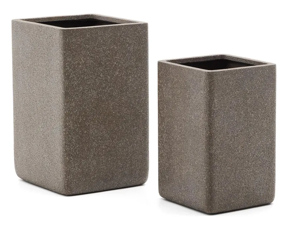Deze bloempot met zijn eenvoudige lijnen en donkere afwerking combineert stijl en functionaliteit tot in de perfectie. Het kubusvormige en minimalistische ontwerp maakt het een veelzijdig element dat zowel binnen als buiten gebruikt kan worden en een modern en elegant tintje geeft aan elke ruimte. Hij is vervaardigd van polycement, een materiaal gemaakt van hars en steenpoeder, en biedt de uitstraling van steen met een hoge weerstand en lichtheid, waardoor hij gemakkelijk te hanteren is en een lange levensduur heeft. Deze bloempot is ideaal om de natuurlijke schoonheid van uw planten te benadrukken en transformeert elke hoek in een omgeving vol verfijning en persoonlijkheid.