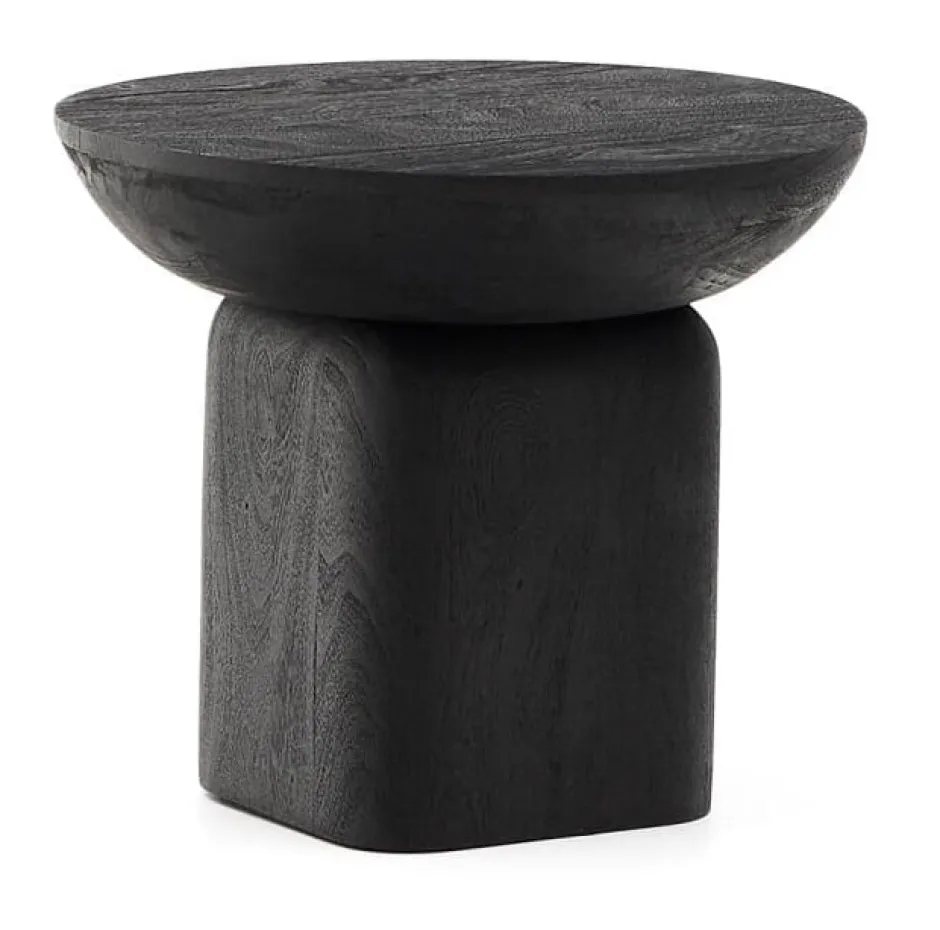 - Bijzettafel van massief acaciahout met afwerking in zwart.