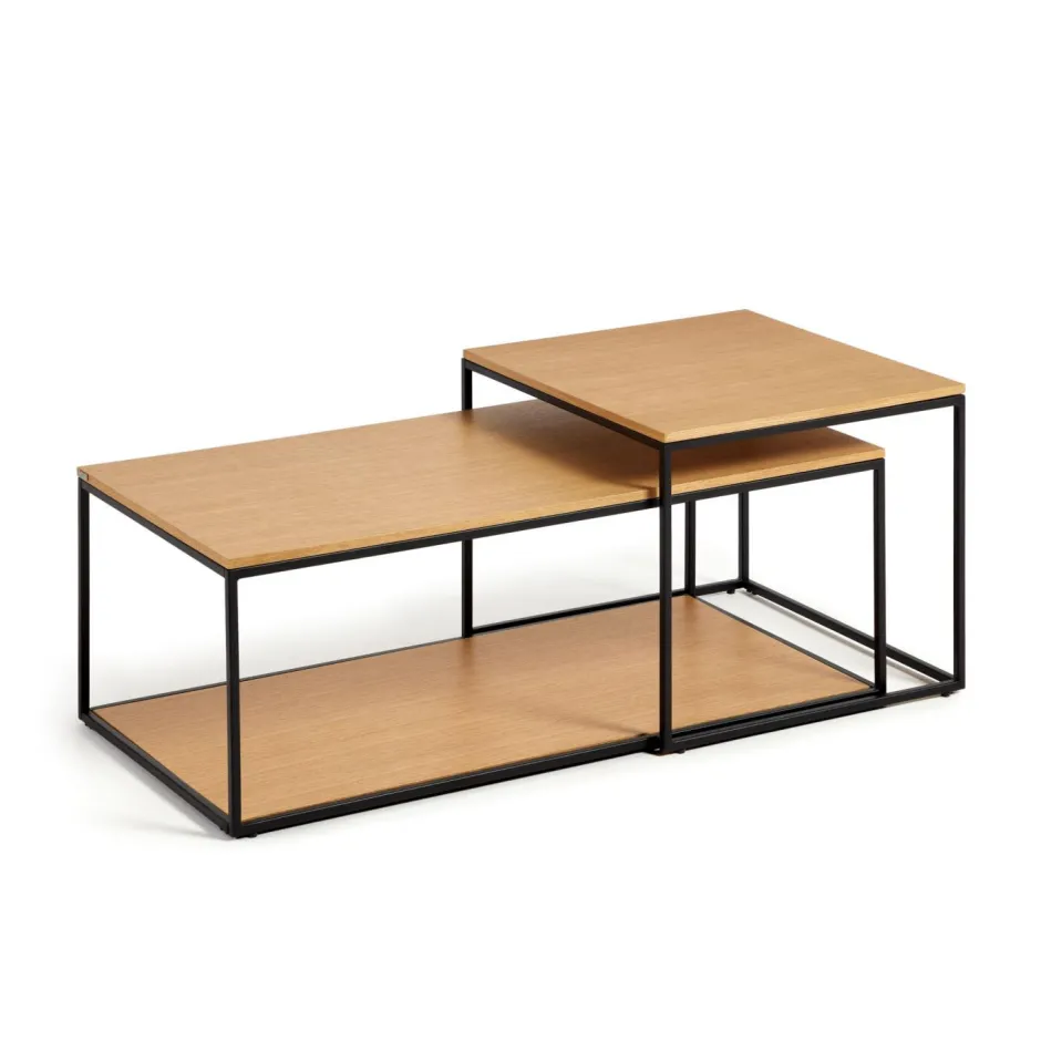 - Set van bijzettafels met blad en onderstel in eikenfineer.