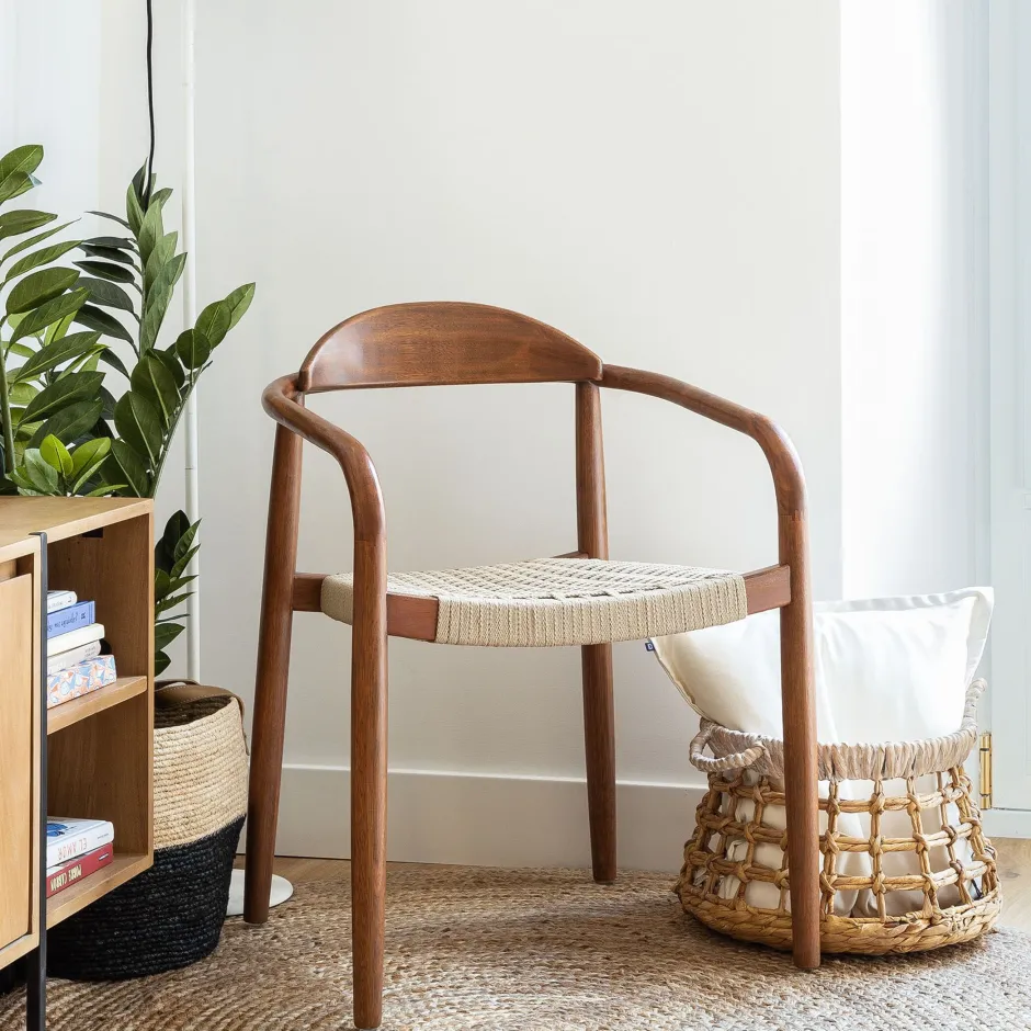 Een stoel die niet alleen prachtig staat in je eethoek, maar ook in je tuin de show steelt. Stoel ‘Nina’ van Kave Home is zo een exemplaar. Het frame van de eetkamerstoel is gemaakt van massief eucalyptushout. Deze houtsoort is duurzaam en matcht goed met de zitting van polyester touw. Dit touw kan prima tegen UV-stralen en maakt van deze stoel dus een goede keuze voor buitengebruik.