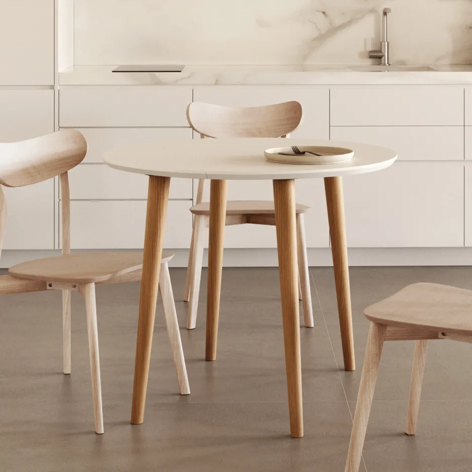 Grote feesten, kleine eetkamer? Wij presenteren je onze beste vriend: de collectie uittrekbare en inklapbare tafels Oqui. Gemaakt van hout en wit gelakt MDF, zijn de stukken ideaal om meer licht binnen te laten, en een gevoel van ruimte te creëren. Perfect als centraal element in je keuken of eetkamer.