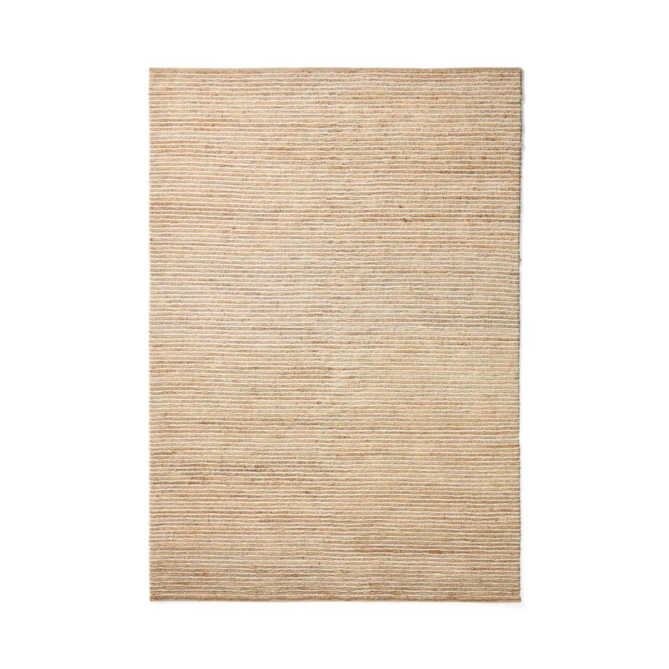 Het Derule tapijt combineert wol en jute in een combinatie die textuur en karakter toevoegt. Het is met de hand gevlochten, wat resulteert in een weefsel met een hoog gramgewicht dat stevig aanvoelt en aanwezigheid biedt. De afwerking weerspiegelt het natuurlijke aspect van de materialen en benadrukt de onregelmatigheden die inherent zijn aan handweven. Het handgemaakte proces en het gebruik van natuurlijk garen maken elk tapijt exclusief, met lichte variaties in het weefsel die het authenticiteit geven. Het past gemakkelijk in verschillende omgevingen en behoudt altijd een eenvoudige, verzorgde uitstraling.