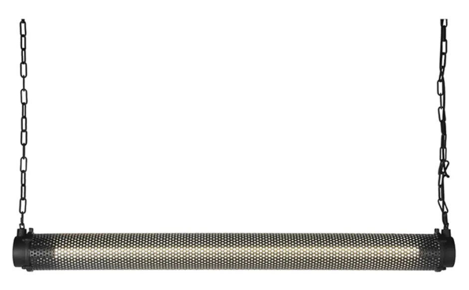 Hanglamp Tube, uitgevoerd in zwart heeft een prachtige horizontale, buisvormige basis omhuld met geperforeerd metaal. Het zichtbare contrast in de open- en geslotenheid in het metaal zorgt voor de perfecte sfeerbeleving, want als de meegeleverde T8 lamp brandt, ontstaat er een prachtig lichteffect. De dimbare T8 lichtbron heeft een levensduur tot maar liefst 30.000 uur, dus extra lang genieten van deze meegeleverde lichtbron is gegarandeerd.