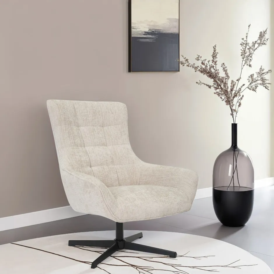 Ervaar klasse en functionaliteit met de Naomi draaifauteuil van Livingfurn. Dit prachtige meubel, met zijn draaifunctie en hoogwaardige materialen, voegt een vleugje stijl en luxe toe aan elke woonkamer.