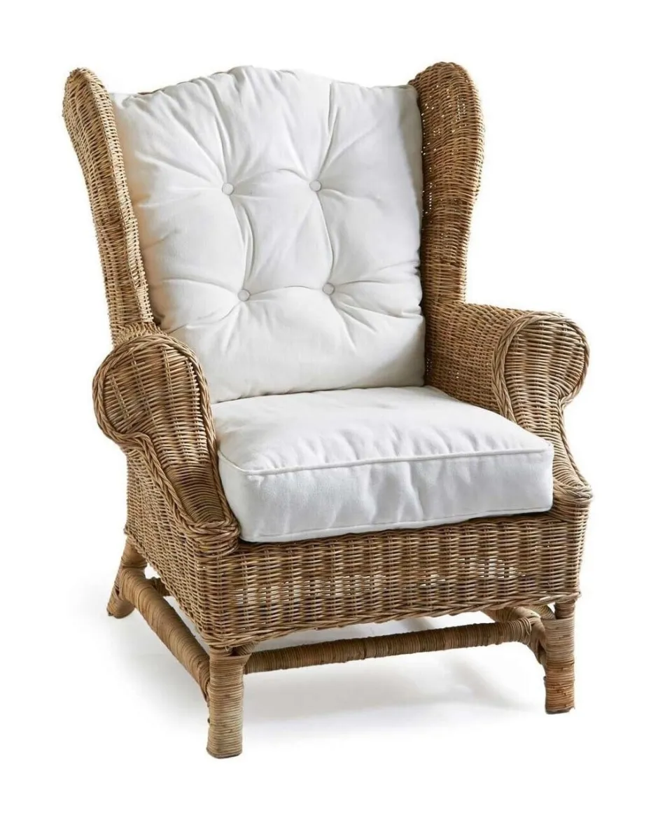 De Nicolas Wing Chair is een vertrouwde klassieker. Het Rustic Rattan krijgt op een natuurlijke wijze zijn grijze kleur. Inclusief zit- en rugkussen en er is ook een voetenbankje van deze serie.