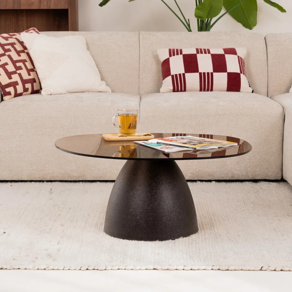 De Brix Mylon salontafels combineren elegantie met moderne materialen. Vervaardigd van rookglas, wat een verfijnde uitstraling geeft, en ondersteund door een stalen poot in een trendy kleur. Mylon is perfecte mix van hedendaags design en duurzame materialen, waardoor ze zowel functioneel als esthetisch aantrekkelijk zijn voor elk interieur.
