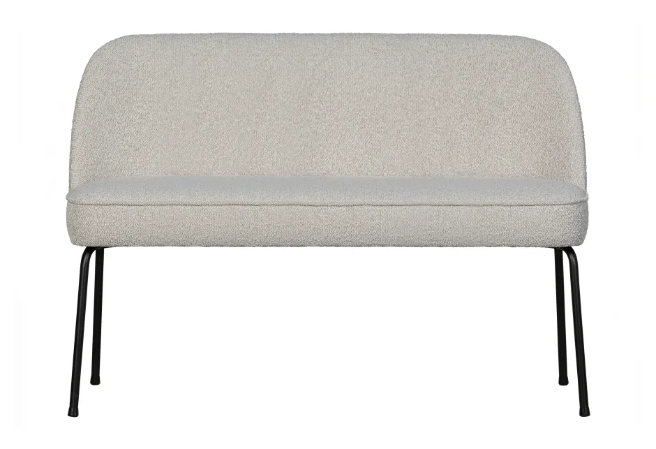 Het materiaal van de Colmar bouclé stof speelt in op de laatste trend: zachte materialen. De stof is comfortabel en heeft een elegante textuur. Onze Colmar bouclé heeft een Martindale van 100.000, dat betekent dat de stof geschikt is voor intensief gebruik. De dichte weeftechniek zorgt voor de sterkte van de stof, dit maakt dat de bouclé niet snel zal slijten of scheuren. Ook heeft elke kleur een hoge kleurvastheid, maar het is aangeraden om direct zonlicht te vermijden om kleurnuances te voorkomen. Het onderstel van de Vogue eettafelbank is gemaakt van metaal met een matzwarte poedercoating. Het frame van de zitting is opgebouwd uit een combinatie van spaanplaat en multiplex. De zitting bevat elastische riemen en een T3542 foam wat zorgt voor een iets stevig zitcomfort wat urenlang een comfortabele zitplaats verzorgt. De rugleuning is gevuld met een T2120 foam.