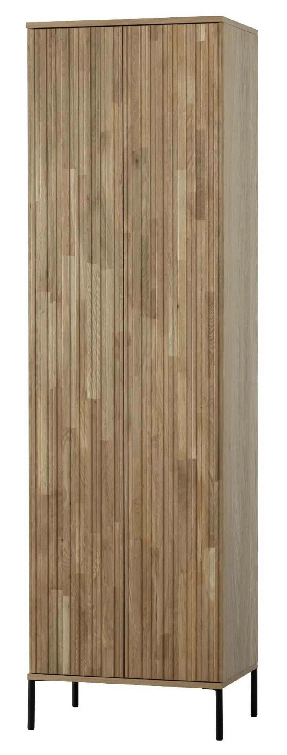 Onze succesvolle Gravure serie in een nieuw jasje! Deze Gravure New hoge kast uit de collectie van het Nederlandse interieurmerk WOOOD, is een aanwinst voor opruimliefhebbers. Gravure New hoge kast is uitgevoerd in eikenhout fineer met een blanke lak. Het interieur is vervaardigd uit spaanplaat in een mist grijze tint. De poten zijn van metaal met een zwarte coating. De Gravure New hoge kast beschikt over twee deuren met een geluidloos push-to-open systeem en een handige lade. ? Verbind beide kasten dan eenvoudig met enkel één poot voor en één poot achter, stijlvol! Eikenhout is een natuurlijk materiaal wat wij graag extra benadrukken, de karaktervolle nerftekeningen is bij elk artikel anders. Hierdoor is elk meubel uniek.