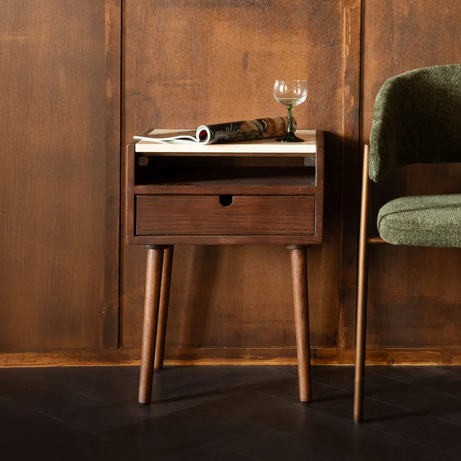 Wanneer je graag de warmte van een vintage interieur in huis haalt met de kwaliteit van nu, zit je goed met de Dutchbone Arda. De meubels uit deze serie zijn namelijk gemaakt van hout in een diepe walnootkleur. Een tint die prachtig afsteek tegen de romige kleur van het natuurstenen blad. Bij de eet- en bijzettafel wordt het hout nog eens extra geaccentueerd door het geribbelde patroon. Maar ook het sideboard en nachtkastje vallen op door hun design met conische pootjes, dat doet denken aan een jaren 50 interieur. Met deze karakteristieke meubels verander je de ruimte dan ook direct in een knusse plek.