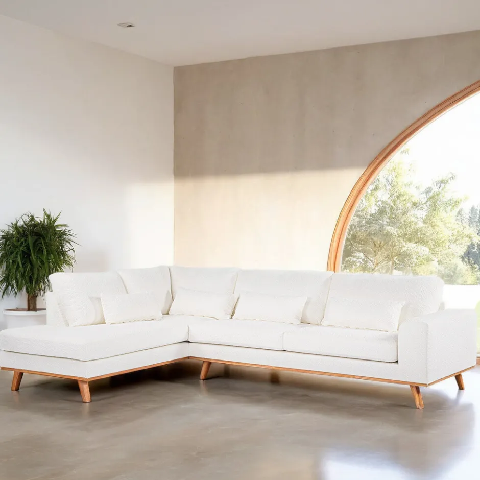 Hot BASE 3-zits Hoekbank Kirstan Bouclé, kleur Naturel