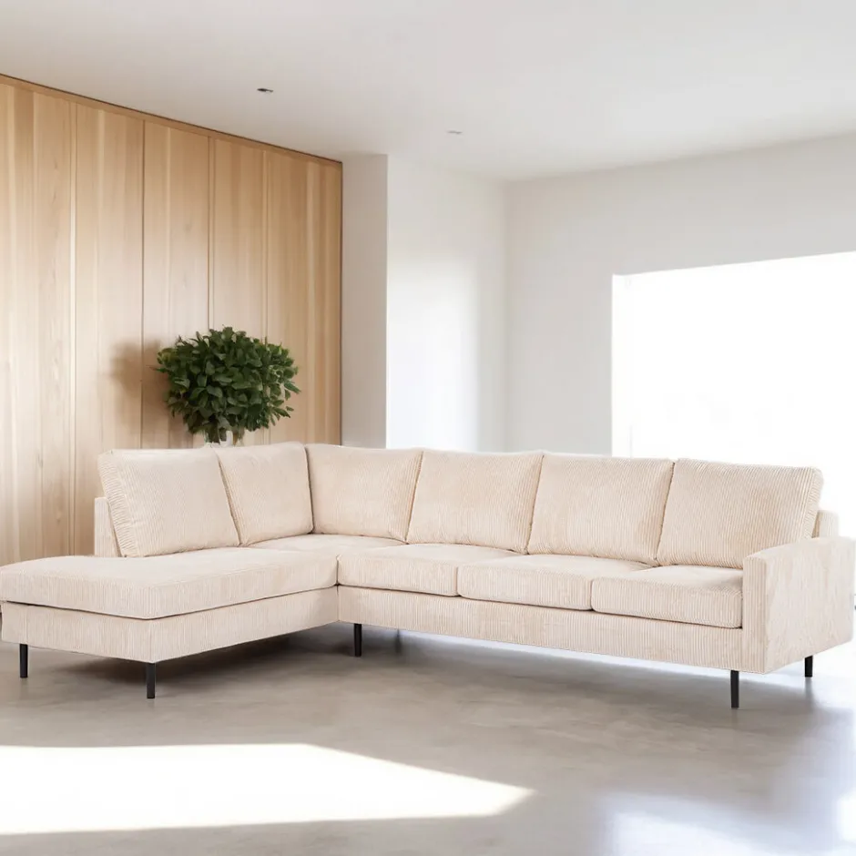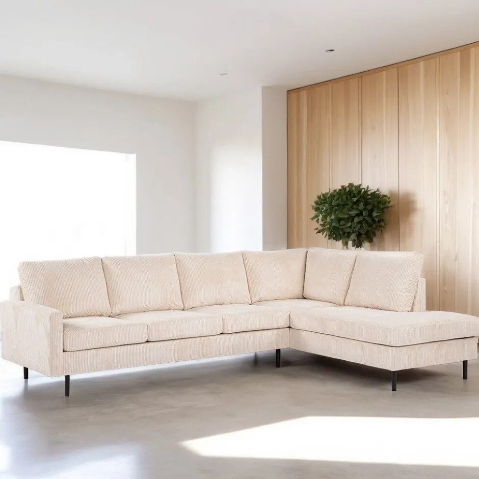 Hot BASE 3-zits Hoekbank Patricio Rib, kleur Beige
