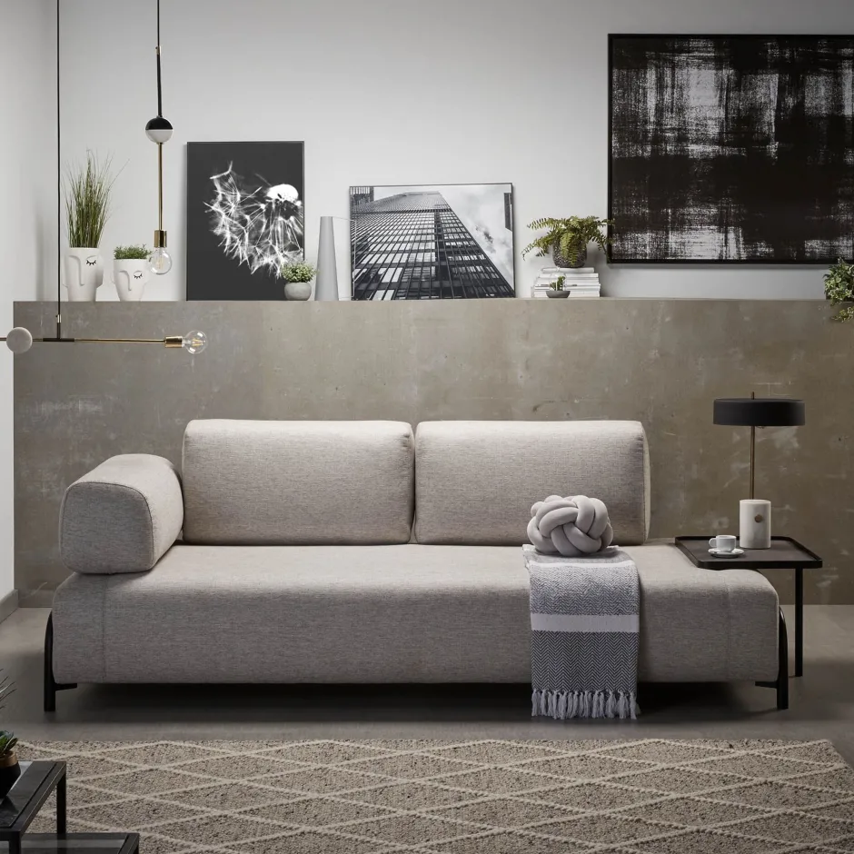 De bank Compo is een ontwerp van Òscar Doll, één van de designers van het Kave Home-team. Een tijdloos en veelzijdig stuk dat past in allerlei ruimtes en bij diverse interieurstijlen. De structuur van dennenhout is bedekt met schuim en bekleed met beige stof. Deze bank wordt de eyecatcher van je woonkamer.
