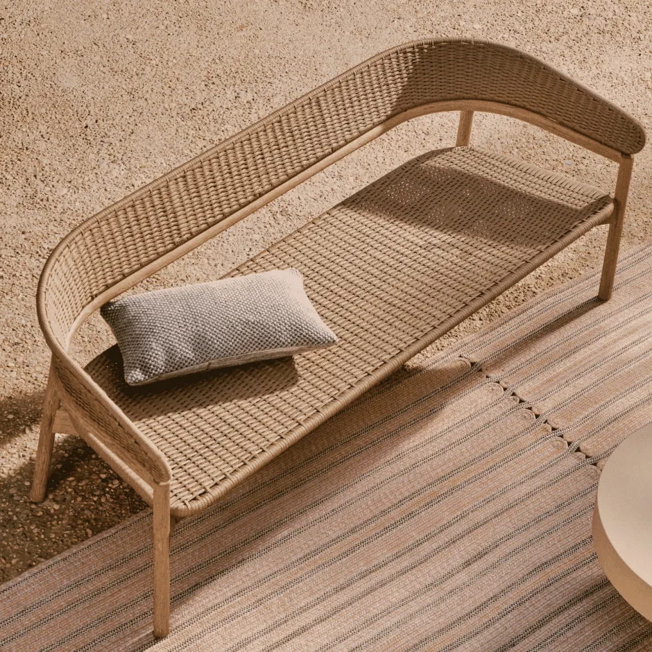 De Arinella collectie vertegenwoordigt de combinatie van rustiek en modern. Elk meubelstuk combineert de verhevenheid van massief acaciahout met een geborstelde afwerking, die de natuurlijke tinten en unieke nerf benadrukt, waardoor elk meubelstuk uniek is. De zitting en rugleuning, gemaakt van UV-bestendig handgeweven touw, zorgen voor een duurzame eigentijdse look die geschikt is voor alle soorten omgevingen. Dit ontwerp, geschikt voor zowel binnen- als buitengebruik, heeft een gegalvaniseerde ijzeren structuur met poedercoating, wat de stevigheid garandeert. Daarnaast heeft het hout een PU-afwerking op waterbasis om de duurzaamheid te versterken. Arinella is gemaakt van 100% FSC™-gecertificeerd hout en weerspiegelt niet alleen een moderne esthetiek, maar ook een toewijding aan verantwoord bosbeheer.