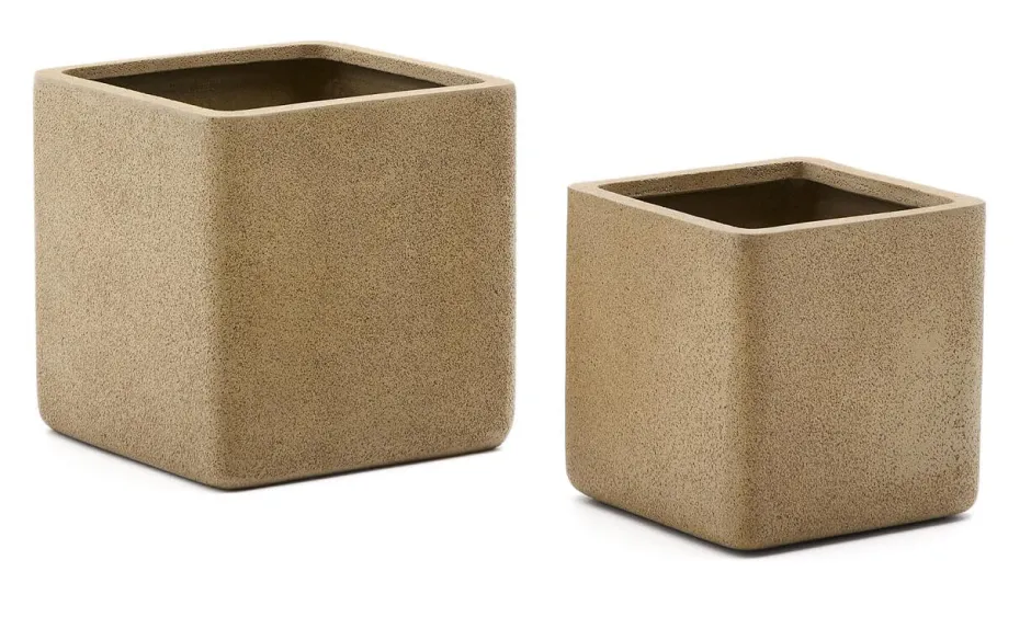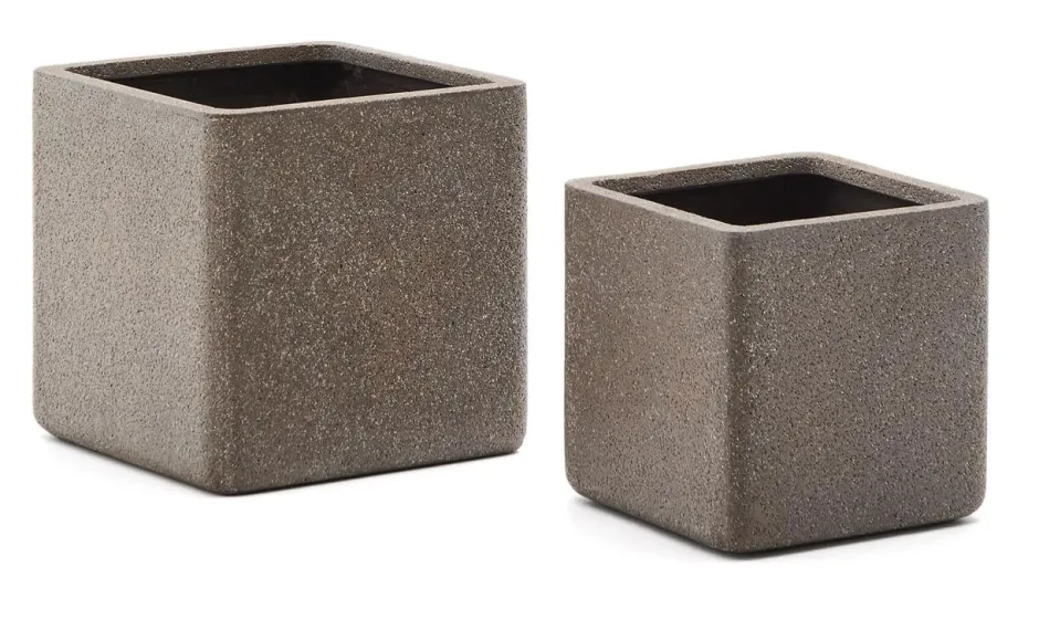Deze bloempot met zijn eenvoudige lijnen en donkere afwerking combineert stijl en functionaliteit tot in de perfectie. Het kubusvormige en minimalistische ontwerp maakt het een veelzijdig element dat zowel binnen als buiten gebruikt kan worden en een modern en elegant tintje geeft aan elke ruimte. Hij is vervaardigd van polycement, een materiaal gemaakt van hars en steenpoeder, en biedt de uitstraling van steen met een hoge weerstand en lichtheid, waardoor hij gemakkelijk te hanteren is en een lange levensduur heeft. Deze bloempot is ideaal om de natuurlijke schoonheid van uw planten te benadrukken en transformeert elke hoek in een omgeving vol verfijning en persoonlijkheid.