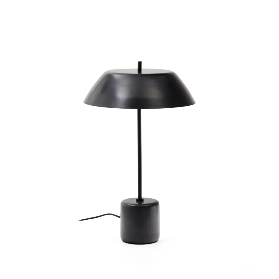 - Tafellamp met zwart marmeren voet en zwart metalen kap.