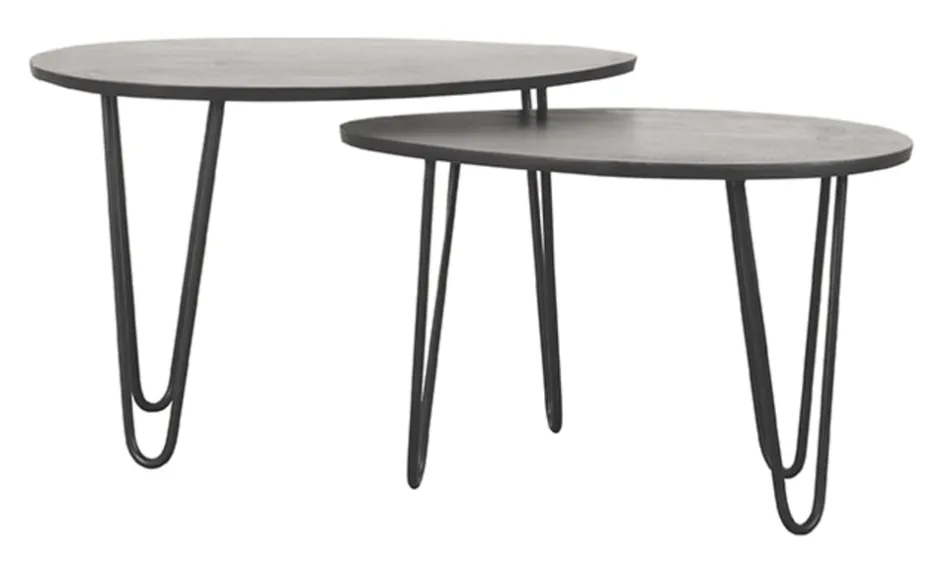 Salontafel set Frisk van LABEL51 bestaat uit twee tafels, gemaakt van grof rough mangohout en zwart metaal. Frisk is zo een ontzettend handige set die je door schuifruimte de mogelijkheid geeft de tafels geheel naar eigen wens neer te zetten. Een echte speelse musthave!