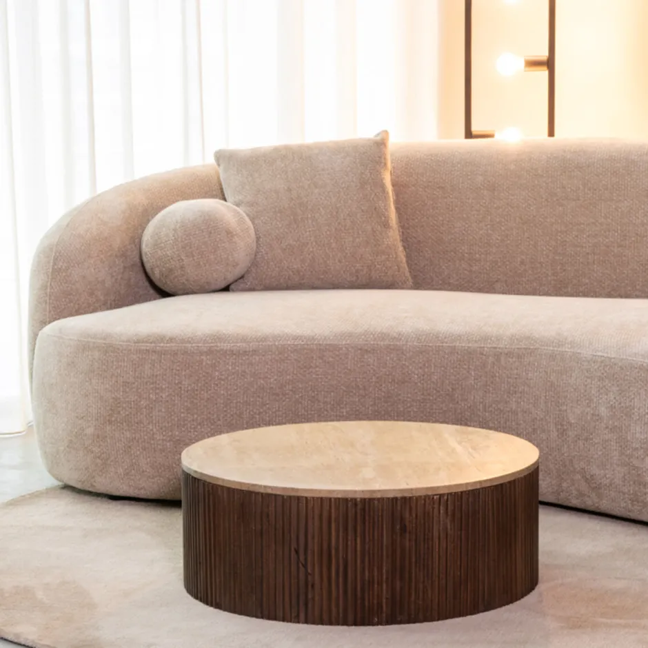 Salontafel Ribble van LABEL51 geeft een stijlvolle touch aan ieder interieur. Met zijn retro ribbel, in combinatie met het trendy travertin blad, is Ribble echt een allemans vriend.