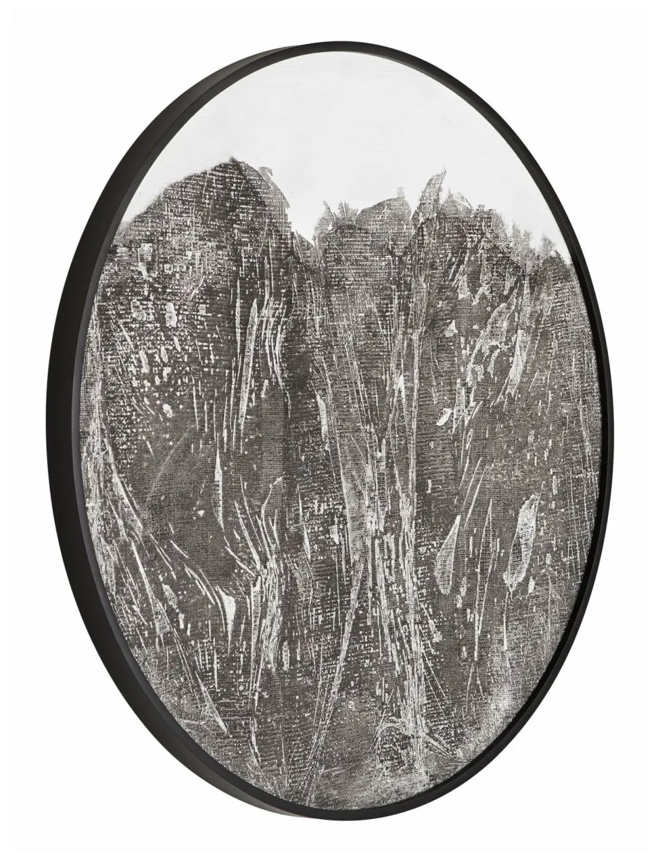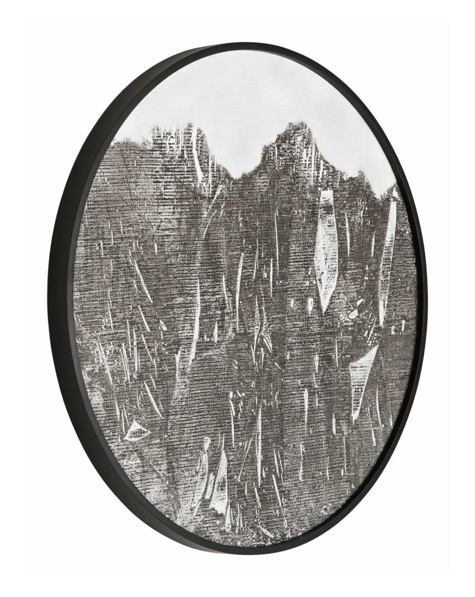 Wandpaneel Imaginary is gemaakt van het duurzame product jute, wat komt van de stam en schil van een jute plant. Vanwege het natuurlijke product is elk item uniek. Het wandpaneel heeft een zwart frame en is Ø71×4 cm.
