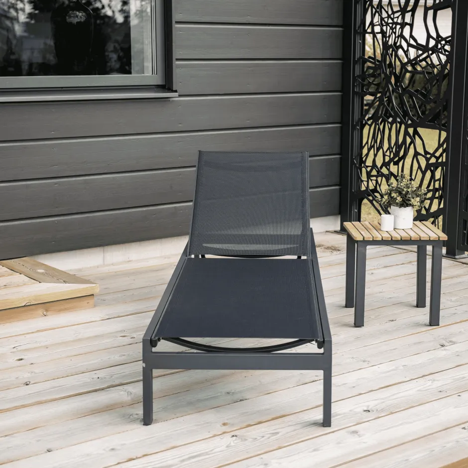 Klassiek zonnebed van groen/kaki gelakt aluminium. De rugleuning van het ligbed kan worden versteld – geniet van een lekker dutje of van het lezen van een goed boek!