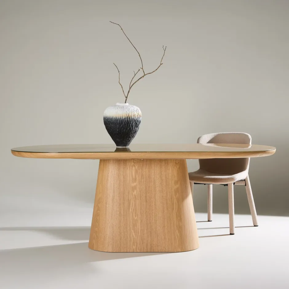 | Materiaal: | Tafelblad: Glas Onderstel: Natuur MDF |