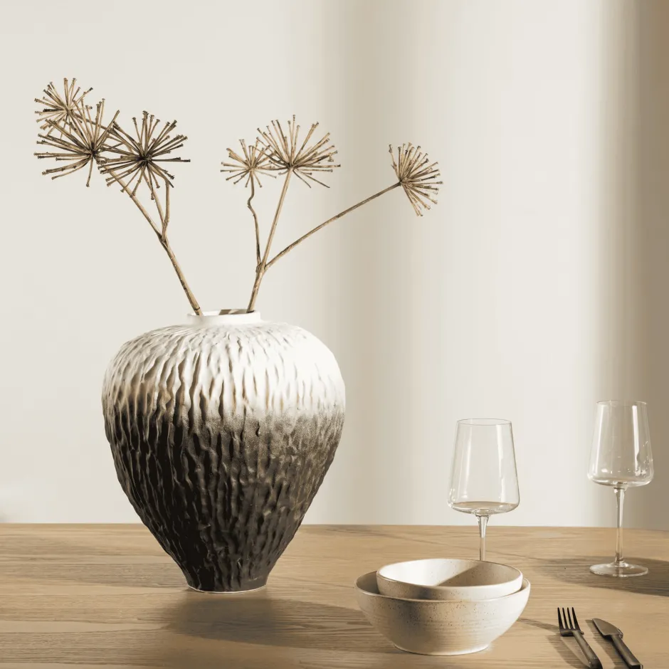 Cortez is gemaakt van keramiek en is niet alleen een functionele vaas, maar ook een kans om je inrichting naar nieuwe hoogten te tillen. Zet Cortez op je eettafel om een sfeer van schoonheid en stijl te creëren die bij elke maaltijd een gespreksonderwerp zal zijn. Met Cortez krijg je niet alleen een vaas, maar ook een artistiek tintje dat je interieur direct verbetert.