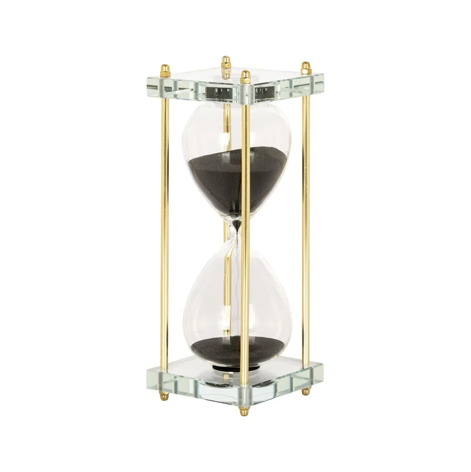 De zandloper Yolina combineert de eenvoud van glas met de verfijning van gouden details. Het heldere glas stelt gebruikers in staat om het zand in real-time te zien bewegen, wat een kalmerend effect kan hebben. De toevoeging van gouden details voegt een vleugje luxe en elegantie toe, waardoor het een prachtig decorstuk is voor elk interieur. Perfect om de tijd op een stijlvolle manier bij te houden of gewoon als een elegante decoratie op een boekenplank of bureau te plaatsen.